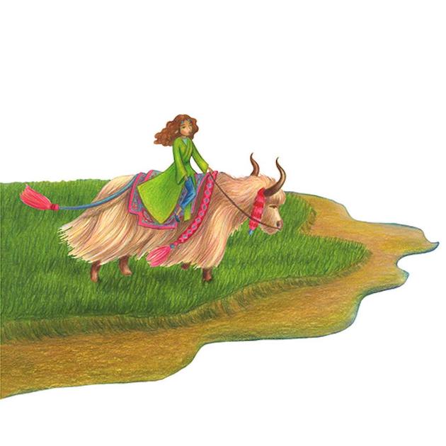 Mesrina’s dagen zijn altijd geel. ’s Morgens wordt ze wakker met de gele warmte van de zon. In de middag pakt ze de gele rieten manden met vers geel stro om de kamelen te voeren. De stad waar ze boodschappen doet, heeft gele gebouwen en fonkelt ’s avonds door honderden gele lichtjes. Mesrina heeft het fijn. Toch droomt ze zich elke avond weg. Ver weg van thuis.